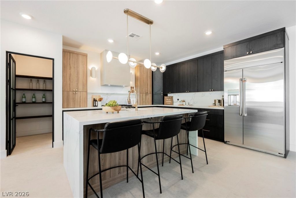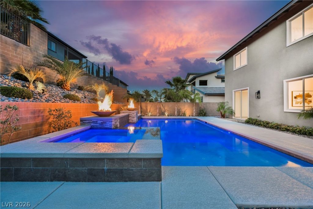 Welcome to 12368 Notch Trail, where architectural ambition meets everyday livability. This beautifully reimagined residence is a study in desert modernism, with a sculptural stone-and-stucco façade and a disciplined material palette curated by Maverick Design. New chef's kitchen, spa-caliber primary bath, designer flooring, updated fixtures, and fresh interior paint ? every surface elevated. The great room is anchored by a floor-to-ceiling Roman clay fireplace with floating oak mantle, framed by expansive sliders connecting interior and outdoor living. The kitchen centerpiece features a waterfall quartz island, dual-tone walnut and espresso cabinetry, brass fixtures, and professional-grade appliances. A rare main-level Next-Gen suite offers its own bedroom, bath, kitchen, and living area ? ideal for multigenerational living or guests. The primary suite features full marble surrounds, dual vanities, and rainfall shower. Resort-style pool and spa with fire bowls complete the retreat!